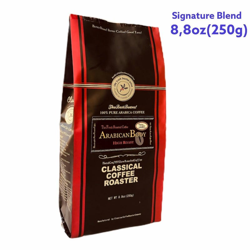 中南米産アラビカコーヒー主に、コロンビア・ブラジル・メキシココーヒー豆のみ100%使用。ストロング(深煎)でスローローストしたシグネチャーブレンド。力強いボディとビターなダークチョコレートの風合いと程よい苦みが特徴。酸味が抑えられたテイストはコールドコーヒーにも。