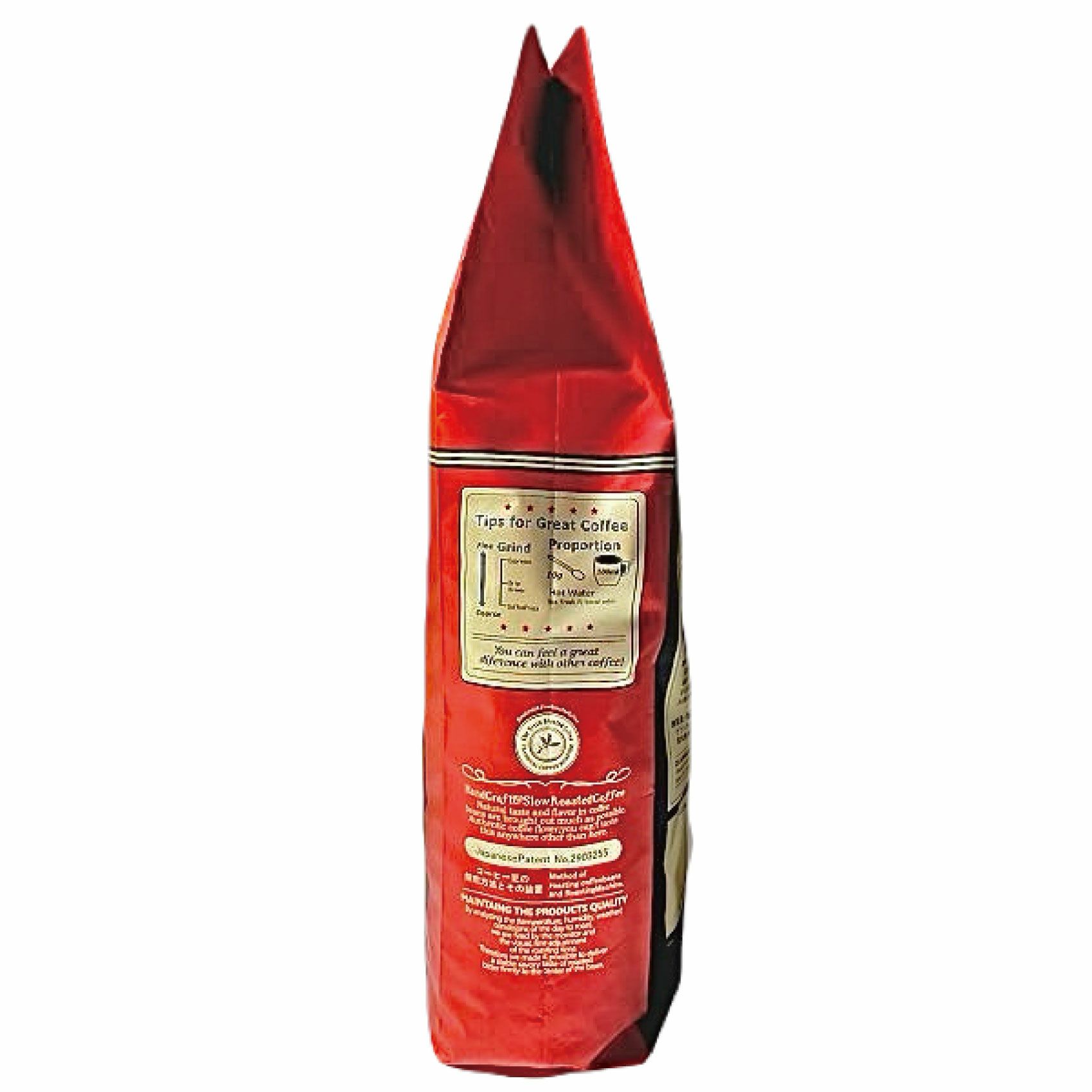 独自のスローロースト(ミディアムストロングロースト)により、コーヒー豆に含まれる天然糖分がわずかにカラメル化することでコーヒー豆の保有する優秀でナチュラルテイストな特徴を残しスイートで心地よい余韻を楽しめます。