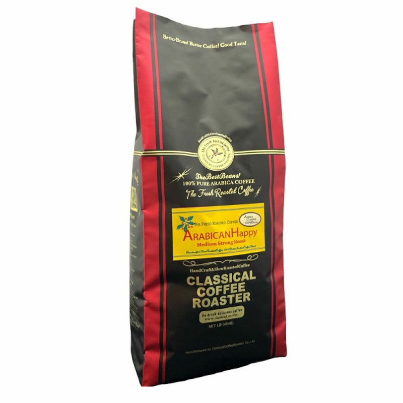 中南米産のアラビカコーヒーのみを100%使用し、ミディアム(中煎り)に近いミディアムストロングロースト(中深煎り)でスローロースト、アフターミックス。