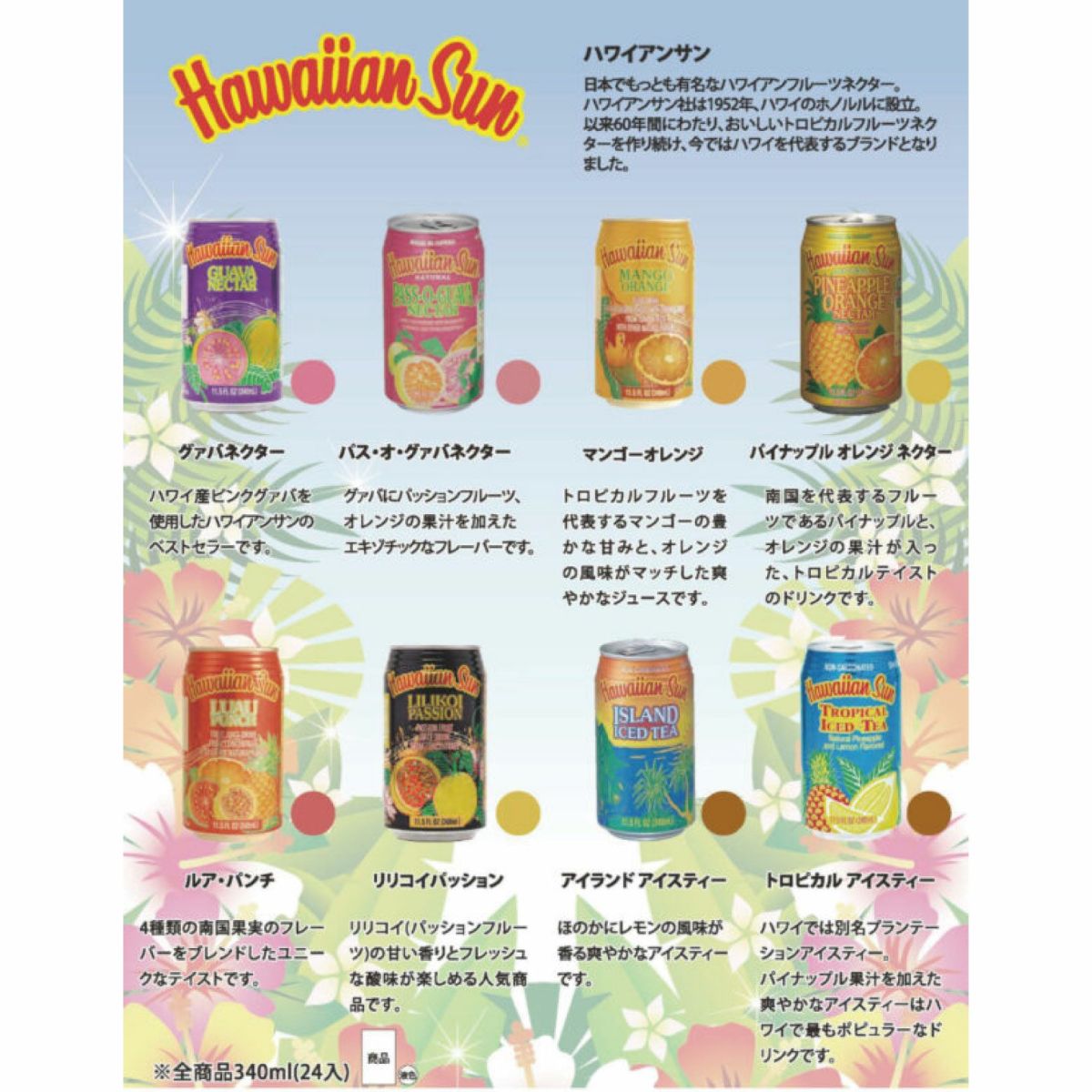 Hawaiian Sun ハワイアンサン リリコイパション 340ml×24本 ケース販売