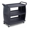 片側サイドに品物落下防止のふちが付いています。また自在に動く車輪は作業の効率を高めます