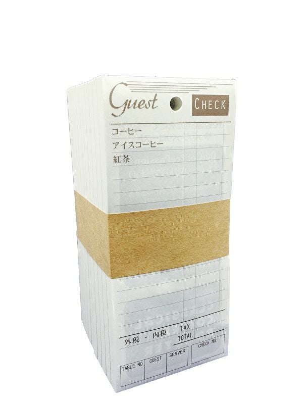 があらかじめ印刷されており、伝票ナンバー、客数、テーブルNo、オーダー担当、などの項目記入欄付きです。
