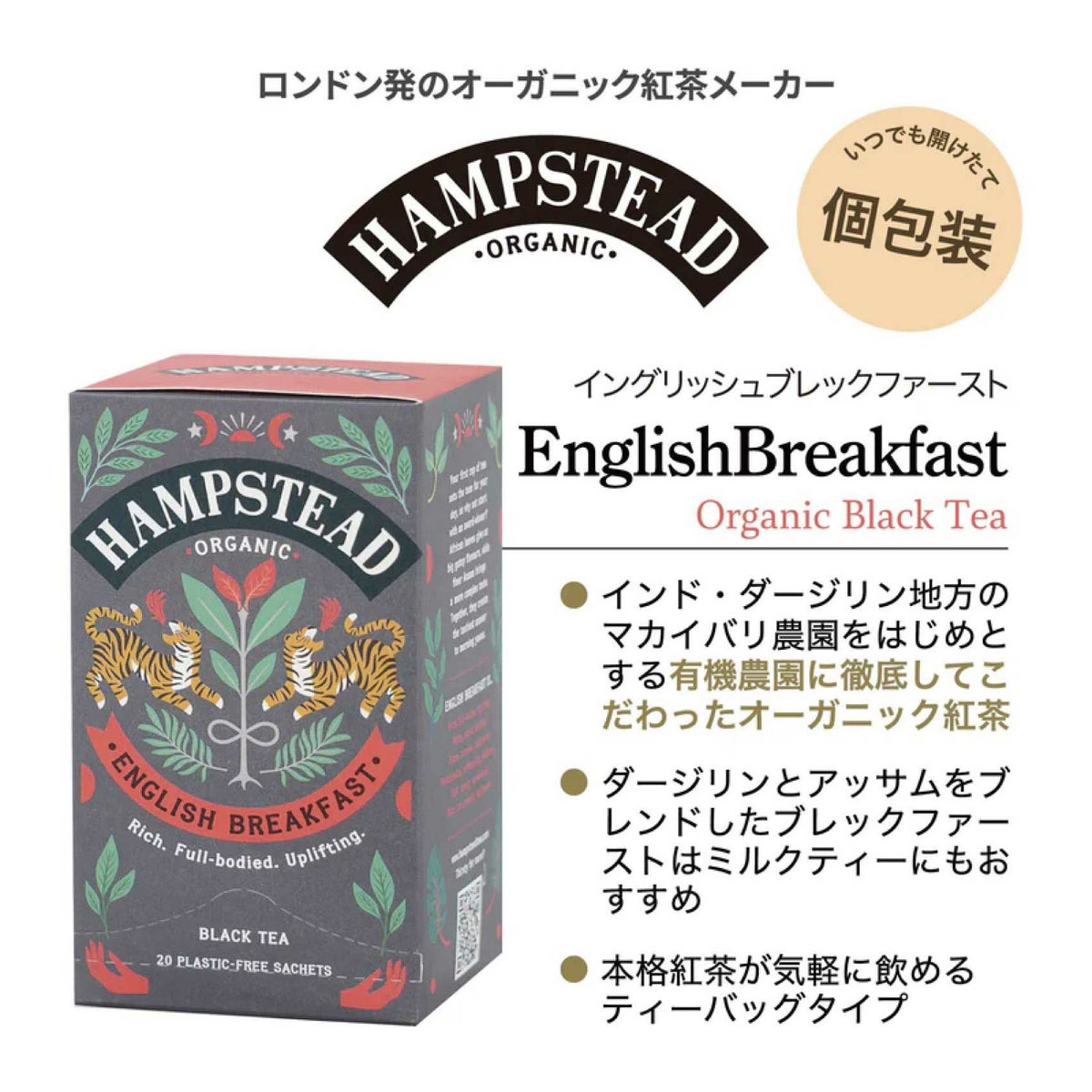 他の画像を見る HAMPSTEAD ハムステッド オーガニック ブラックティ イングリッシュブレックファースト ティーバッグ 2g X 20P 当店特別価格 ¥ 770 税込 カートに入れる お気に入りに登録する